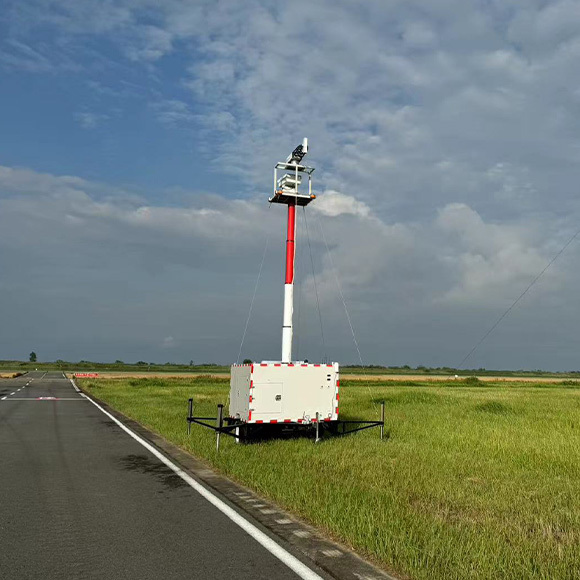 升降机构可将毫米波雷达和光电监视设备升高至7m,并可通过横向支撑支脚和张紧钢绳的组合实现高稳定度举高平台。